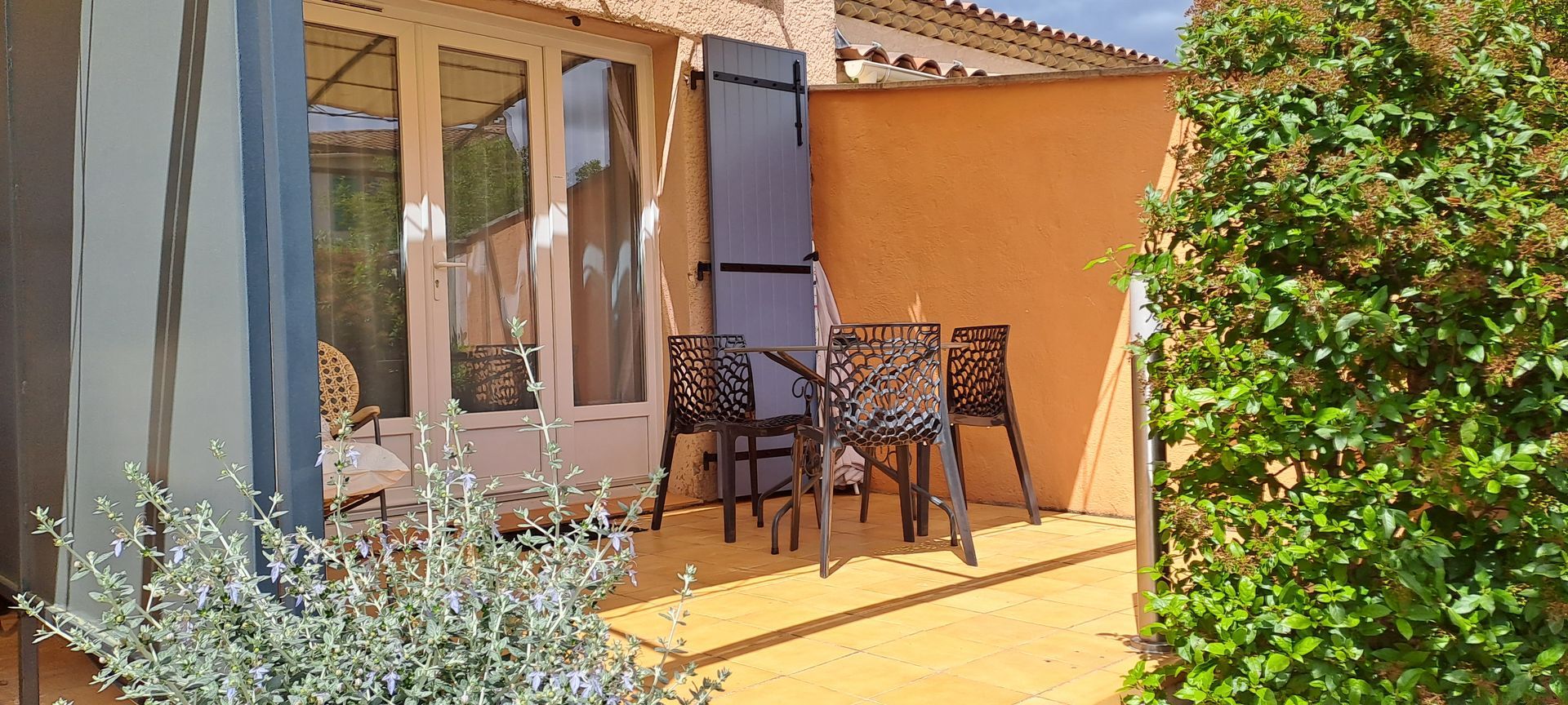 - Terrasse privative (10m²) avec panneau de séparation. Table et sièges.